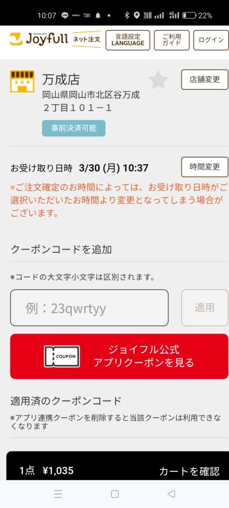 ●ジョイフルの公式アプリと、ジョイフルのネット注文アプリの2つが必要です。最初時間が掛かると思いますが、1回やってしまえば慣れると思います。