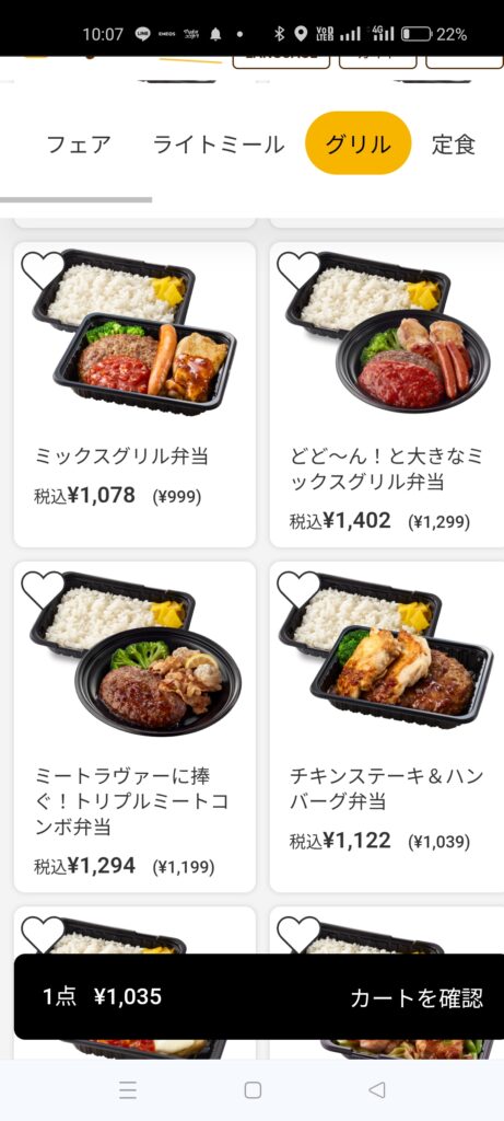 ●メニューを選びます。注文例ではミックスグリルセットのライス大盛りにしました。