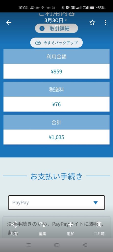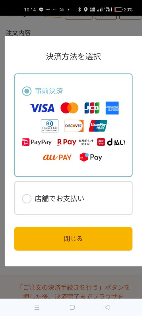 ●注文例ではペイペイで支払いを選択しました。